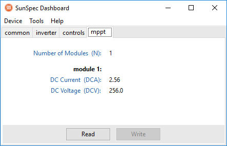 Modbus communication can be displayed in application SunSpec Dashboard (more info and installation conditions to be found here).