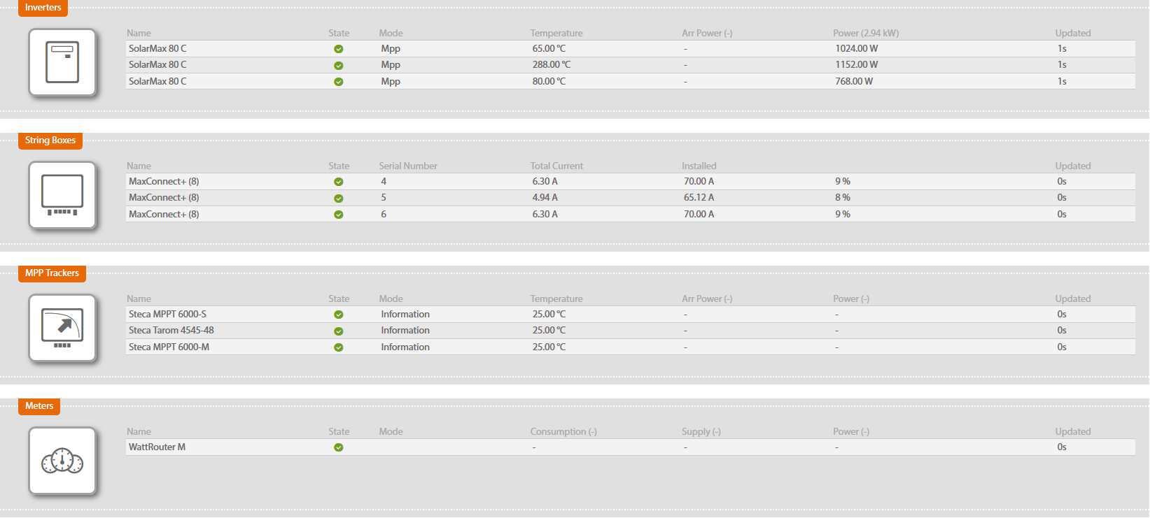 In Solar Monitor's web interface we can see these devices detected.