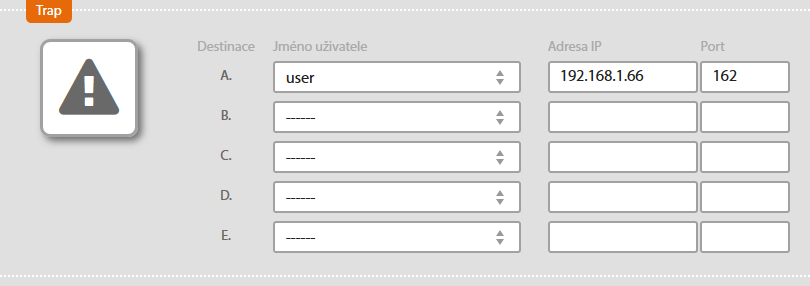 Pokud chcete přijímat Trapy ze zařízení, nastavte v Solar Monitoru, v menu Nastavení/SNMP, Trap tabulku.