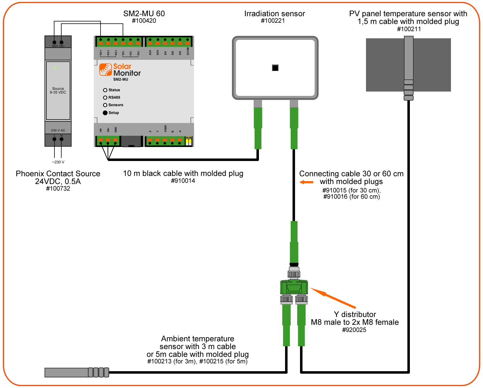 Senzor osvitu je k Solar Monitoru připojen venkovním PUR kabelem (délka dle Vaší potřeby) s konektorem M8F.