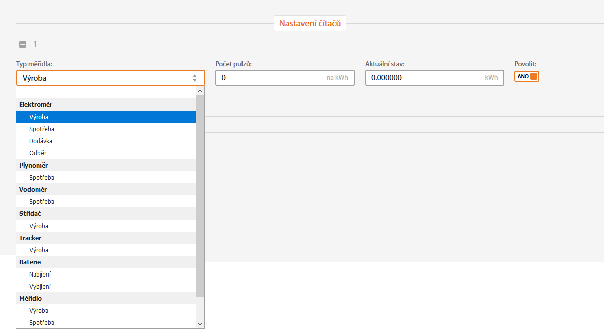 Pokud nemáte k Solar Monitoru připojený žádný čítač (elektroměr, plynoměr, vodoměr, střídač, tracker, baterii nebo jiné měřidlo), přejděte na Další >>