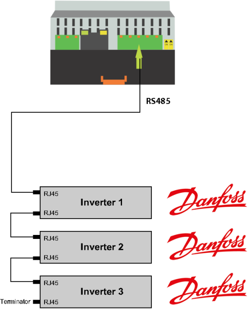 In case of the involvement of multiple inverters, connect the inverters with straight cable.