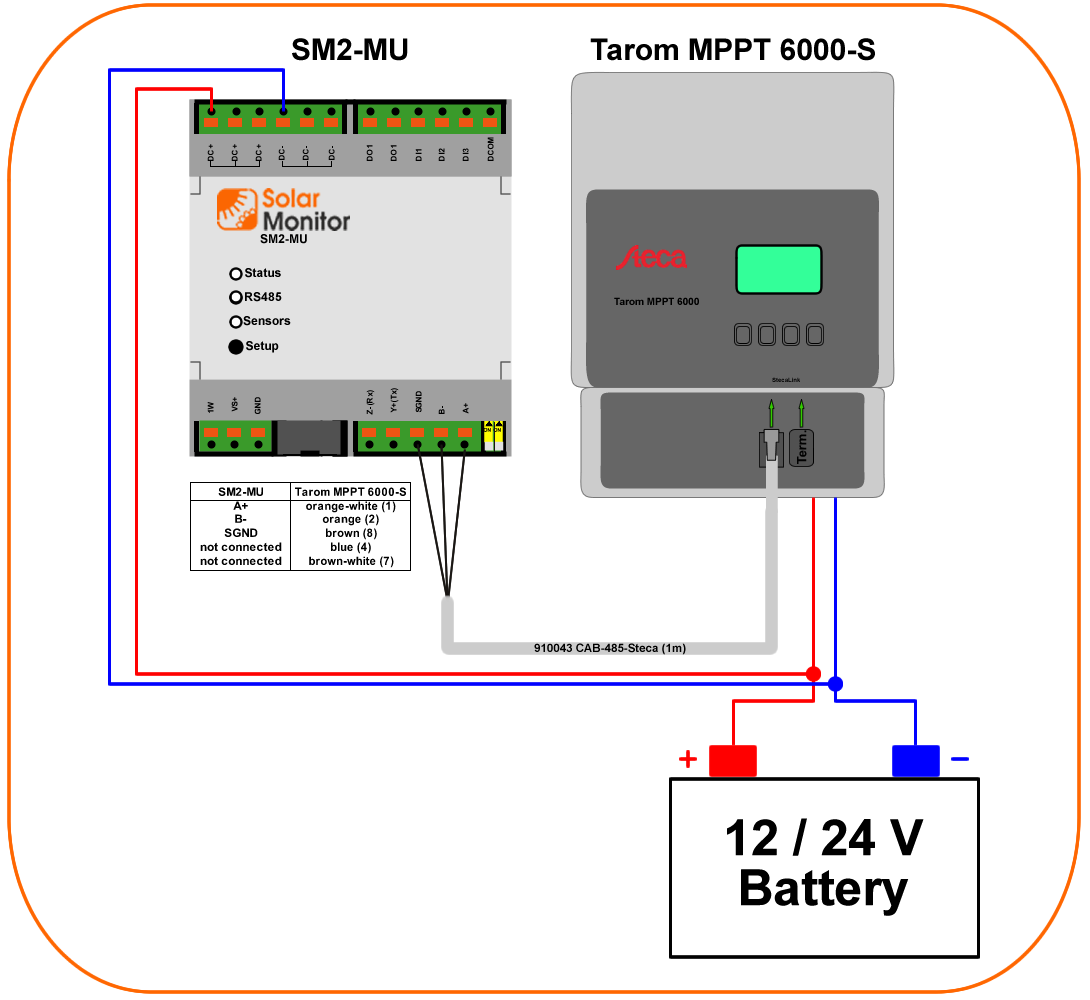 SM2-MU powered from battery 12 or 24 V which is connected to the Tarom MPPT 6000-S