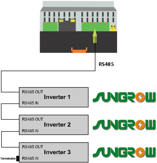 In case of the involvement of multiple inverters, connect the inverters with straight cable.