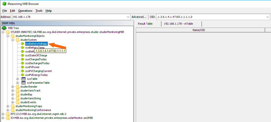<font 14px/Arial, sans-serif;;rgb(51, 51, 51) font-family: Arial, sans-serif; font-size: 14px;;;#ffffff>In MIB tree database select variable you want to display and use to mouse left button control to click on it. Variable's description and OID identifier appears in lower left corner.</font>