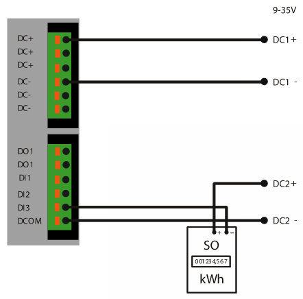 Solar Monitor is connected to the electro meter with its S0 (puls) output as shown in the following picture: