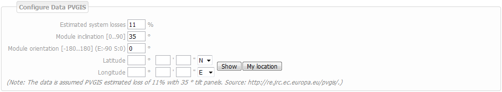 Select estimated losses of the system in %. The losses depend on technical quality of photovoltaic system. It used to be about 14 % but new modern photovoltaic systems have only about 10 - 11% loss.