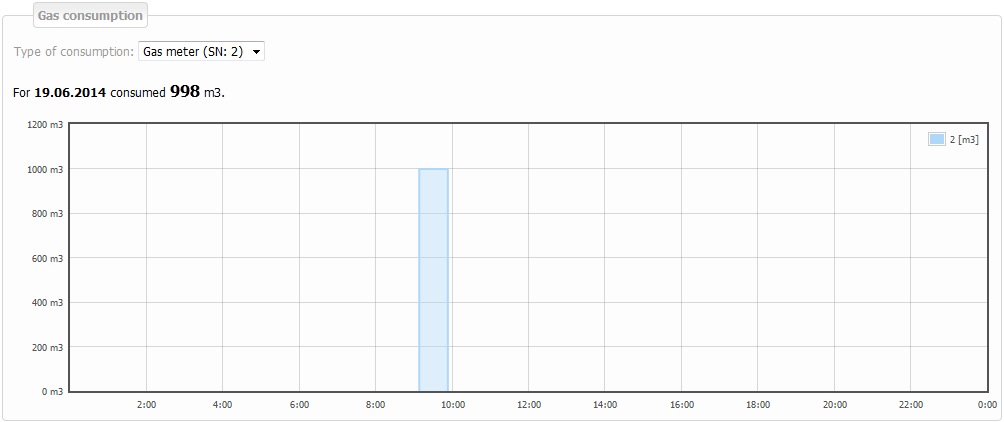 Light blue colour shows the gas consumption. Units (m3 ) to be found in the left side of the graph.