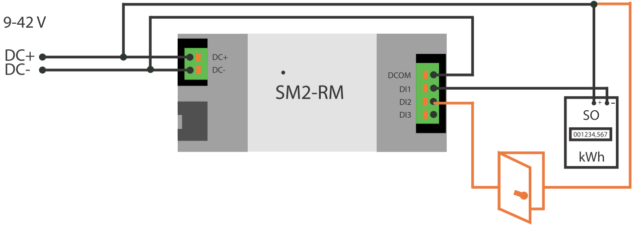 Connect DC- supply signal to DCOM terminal. In order to switch the input on, voltage between terminals DCOM and DI (DI1-DI3) must be higher than 8V.