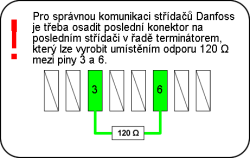 Na posledním výstupu ze střídače (slepém) se zapojí terminátor.