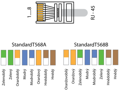 Rovný UTP kabel = oba konce stejné (T568A)