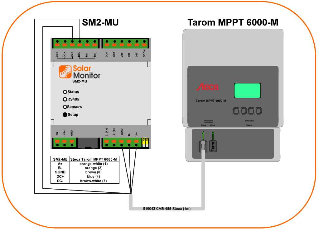 Přímé napájení SM2-MU z baterie 12 nebo 24 V, která je připojena k Tarom MPPT 6000-S