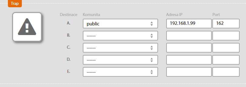 Nastavení, kam se budou trap zprávy (události) odesílat.