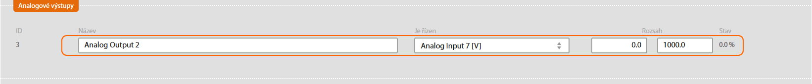 Nastavení analogového výstupu provedeme obdobně jako u digitálních. Vybereme v závislosti na čem se bude výstup nastavovat (např. teplota místnosti s měniči, výkon elektrárny).