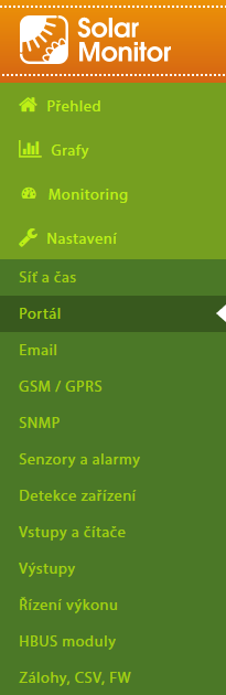 Vstupte v SM2-MU do menu Nastavení/Portál.