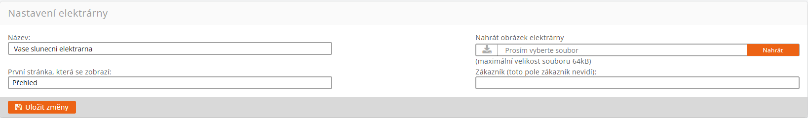 Zde máte možnost změnit název Vaší elektrárny na portálu.