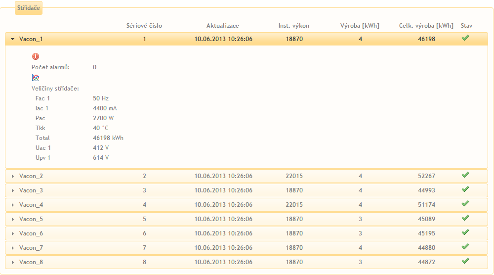 Střídače Rozkliknutím střídače zobrazíte detailní přehled o jeho výrobě.