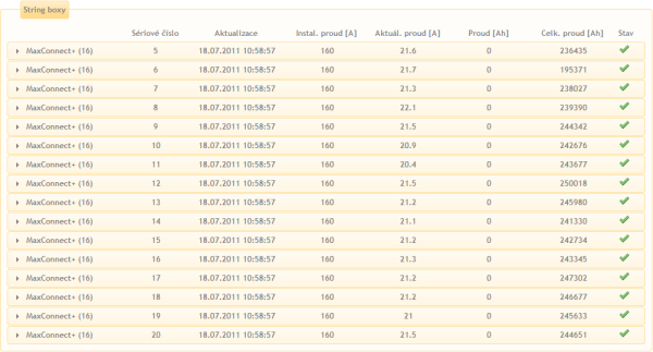 Slouží k detailnímu zobrazení stavu stringboxů.