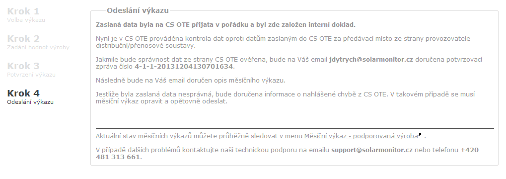 Po dokončení aktivace (propojení elektrárny s Vaším účtem v CS-OTE) máte nyní možnost vykazovat.