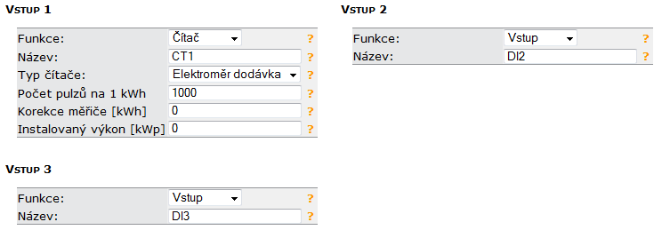 Zvolte k jednotlivým vstupům jejich funkci (Vstup, Čítač, Neaktivní).