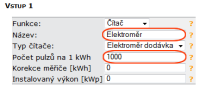 Zadejte název čítače a nastavte správný počet pulzů na 1 kWh.