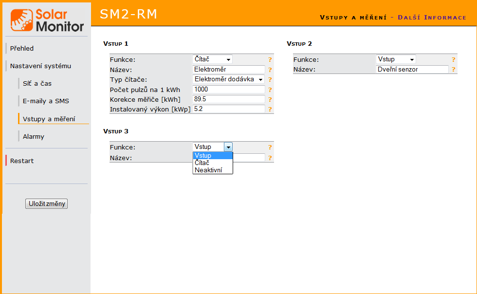 Vstupte v SM2-RM do menu Nastavení systému/Vstupy a měření